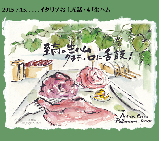 今回の旅のアクセントはそんなパルマ郊外の、星付きレストランを抱くオーベルジュでの滞在。もう夢心地でございます。でも気合いとは裏腹に、冷房無しの長距離電車に揺られ過ぎて、熱中症一歩手前。腹12分目くらい食べるつもりが、腹5分…残念な状態だったけど、自慢の生ハムの最高峰、黒豚クラテッロはしっかり頂いた。