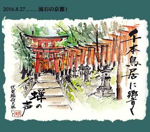 何度も京都に行っているのに一度も行ったことがなかった「伏見稲荷大社」、朝からギラギラ太陽が照りつけているが早めにホテルを出て、イノダコーヒー本店で美味しいモーニングを食べて、京阪電車に乗り込む。駅からは外国人観光客の後について行けばたどり着けるだろう…正解!朱色の大きな社殿に迎えられ、朝からそこは賑わっていた。
