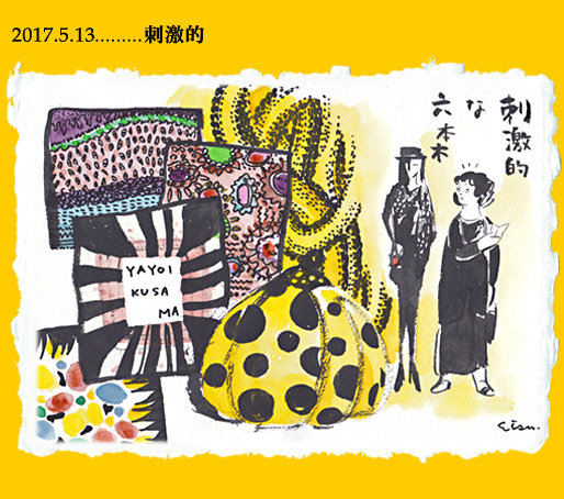 ダリやピカソは死んでしまったけど草間彌生はまだ健在で今なお精力的に制作を続けている。何度かその作品は目にする機会はあり、先日も銀座にオープンしたGINZASIXの吹き抜け空間に彼女の作品がどどど〜〜ん!とぶら下がっていたのを見た。水玉だらけの気持ちがいいとは言い難い作品群だが、それらは圧倒的で時には楽しく時には苦悩に満ちているような…独自の道を貫く色の洪水である。会期終了もまじかの国立新美術館、予想通りとても混んでいた。外国人も多く年齢層も広い。「今だかつてない刺激だ〜!」と興奮してるのは横で見ていた小学生。スマホでの撮影OKも(最近増えたね〜撮影OKのコーナーがある美術展)美術館は静かに鑑賞するもの…という概念をだいぶ覆しているのかもしれないが全体が興奮している感じだ。ふと見たらすぐ横に黒い帽子に水玉のスカーフの細〜い萬田久子!