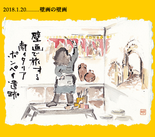 今年も始まって2週間。相変わらずスタートダッシュは遅くモタモタと雑用に追われまだ準備期間という感じ。嵐の前の静けさか…講座やお教室も来週から、それと並行して久しぶりに「壁画」の仕事が入っている。壁画と言ってもレストランの壁の絵。ピザ屋さんの壁に「ポンペイ遺跡」を描くという依頼だ。思えば2006年12月に訪れているナポリ〜ポンペイ。この絵手紙コラムでも描いています(2006年12月のコラム)それを見直したり、その時写した写真の役に立つこと!