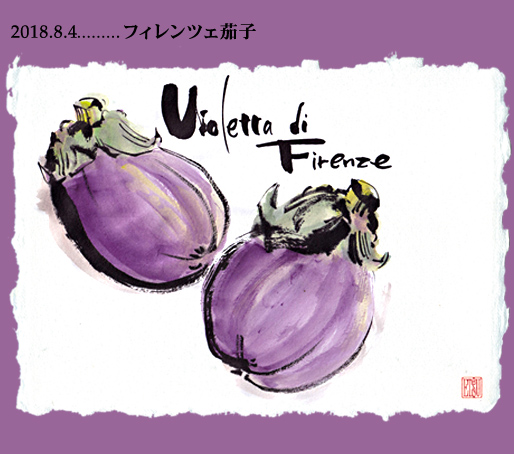 暑すぎて葉物野菜が高騰している。トマトやナスは良い出来らしいのだが、先日、家庭菜園でイタリア野菜作りに凝っているという、知人の旦那様よりフィレンツェ茄子のお裾分けをいただいた。丸くて大きい加茂茄子のような見た目で弾力がある。「Violetta