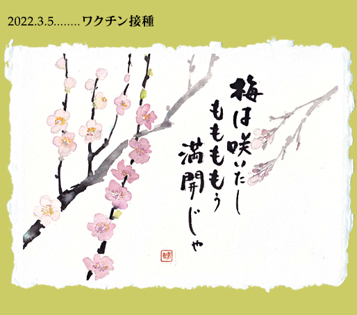 さて、陽気はぐっと春めいて梅も満開、桃も満開、次は桜ですね〜。こんなしんどい思いしてワクチン接種受けたのだから、安心してお花見できるようになってほしいものですね〜。